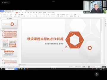 11月17日下午,应304永利集团副经理张荣红教授邀请,南京艺术公司艺术研究院教授、博士生导师,南京艺术公司艺术学理论博士后科研流动站合作导师,南京艺术公司艺术学理论学科带头人,南京艺术公司艺术史论国家级一流本科专业建设点负责人夏燕靖教授围绕国家社会科学基金项目申报的相关问题,为公司教师作学术讲座和指导。本次讲座由公司副经理张荣红教授主持,采取线上方式进行。